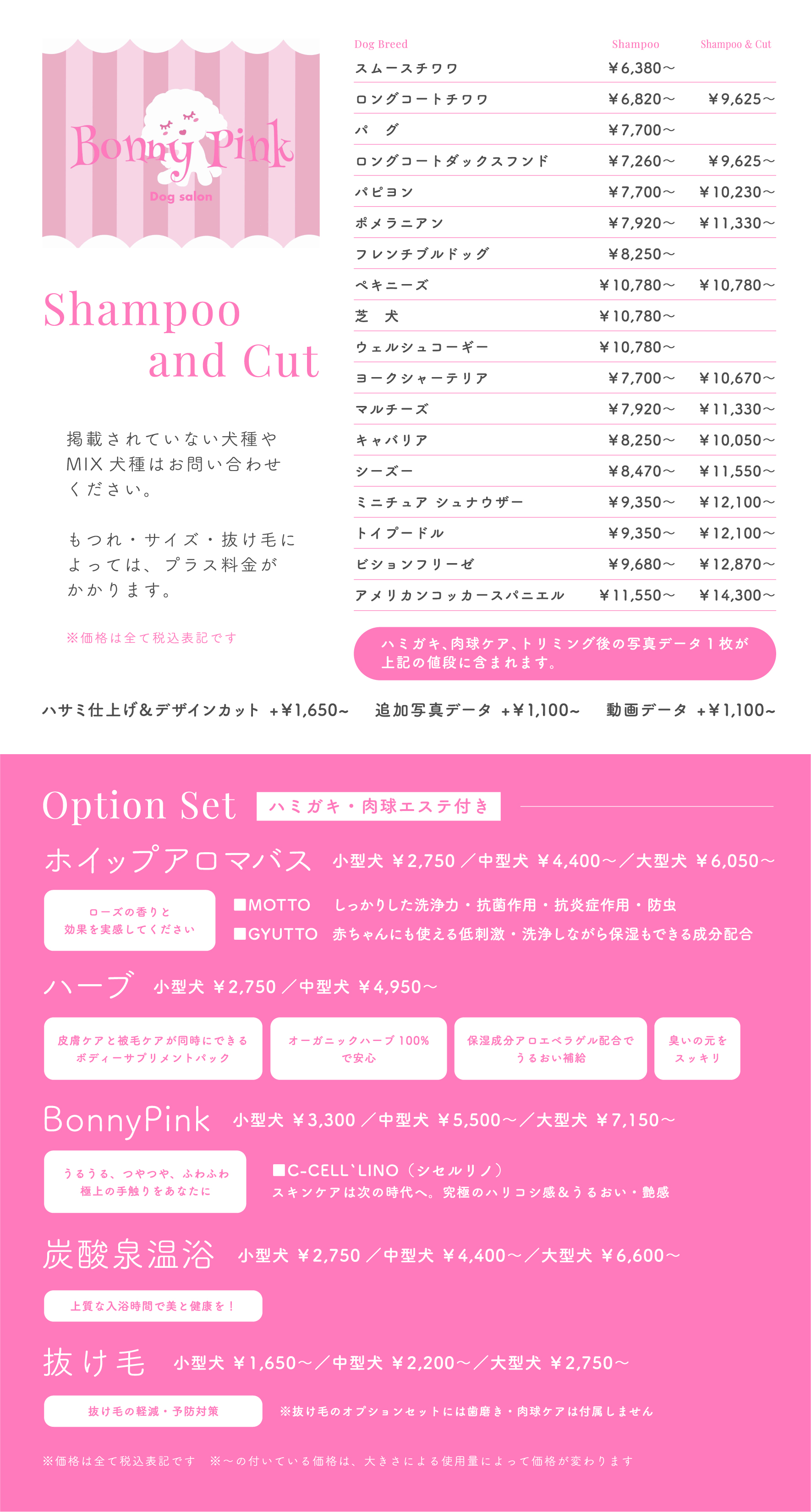 ※ハミガミ、肉球ケア、トリミング後の写真データ1枚が上記価格に含まれます。